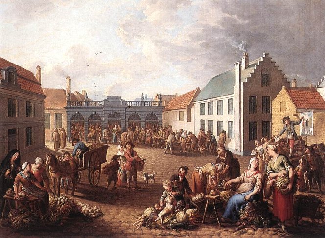 The Walker Art Gallery houses Salomon’s painting entitled River Scene with a Ferry Boat and we see a ferry crossing the river laden with people, livestock and even a small cart. These ferries were an essential feature of the watery Dutch countryside, and a popular subject with landscape painters such as the Ruysdael family. This work is typical of much 17th-century Dutch landscape painting: naturalistic in its clear light and cloudy, rain-washed sky, but at the same time carefully organised to achieve a balanced composition. This work despite looking as though it was painted en plein air was not painted outdoors. It is an idealised depiction and probably does not represent any particular place but is an amalgam of various details and features from a number of different places juxtaposed to form this vista. Close to the riverbank we see a smaller boat with busy pulling in a fishing net. On the bank is a barn in which workers are salting fish and putting them into barrels. On top of the barn is a large dovecot. In a way the painting is a ‘foodscape’ as well as a landscape, highlighting what nature has to offer. The Dutch patrons liked this kind of narrative painting.