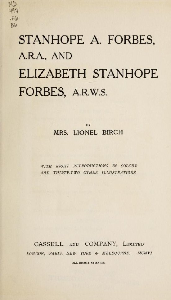 “…It was a very simple motif, but painted with great care and conscientiousness, and with a close and searching attention to those truths of lighting and that clear out-of-door aspect which the painter sought to betray. It was interesting, too, as the first attempt Stanhope Forbes had made in what might be termed figure composition, if, indeed, a picture in which there is so little of arrangement in the grouping of the figures can be termed a composition. But it was, at any rate, a great step from simple portraiture, and its success — for it brought the young painter a very signal one — had the most marked influence in determining his future. Exhibited at the Royal Academy of 1881, it attracted favourable attention, and when, later on, it was sent to Liverpool, the Committee of the Walker Art Gallery decided to purchase it for their permanent collection…”