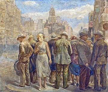 Louise and Arnold had only been living in Denver for three years when the country was hit by the Great Depression and Louise knew that with their finances being in a poor state she and the family needed some help to survive. She turned to the WPA. The WPA was the Works Progress Administration, later known as the Work Projects Administration. This was an American New Deal agency that employed millions of jobseekers to carry out public works projects. The Federal Art Project was one of the five projects sponsored by the WPA, and the largest of the New Deal art projects. It was not solely created as some cultural activity, but as an assistance measure which would lead to artists and artisans being employed to create murals, easel paintings, sculpture, graphic art, posters, photography, theatre scenic design, and arts and crafts. One of the important things for the artists, besides earning money, was that commissions were essentially free of government pressure to control subject matter, interpretation, or style.