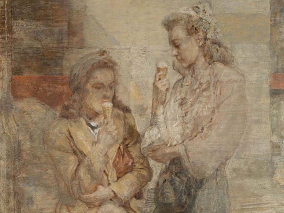 “… Between the children’s meal time, the mother rests while the artist works…”