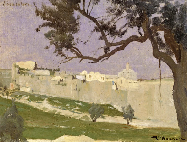 Léon Bonnat recorded the impressions and the specifics of their arrival at the gates of Jerusalem in April of that year in one of his may oil on canvas sketches entitled View of Jerusalem.