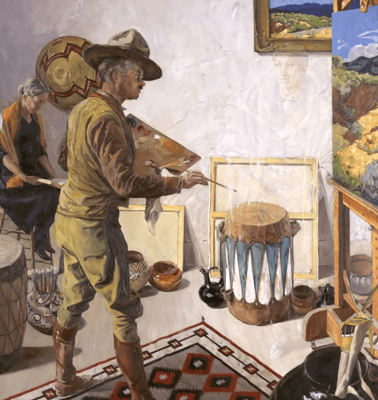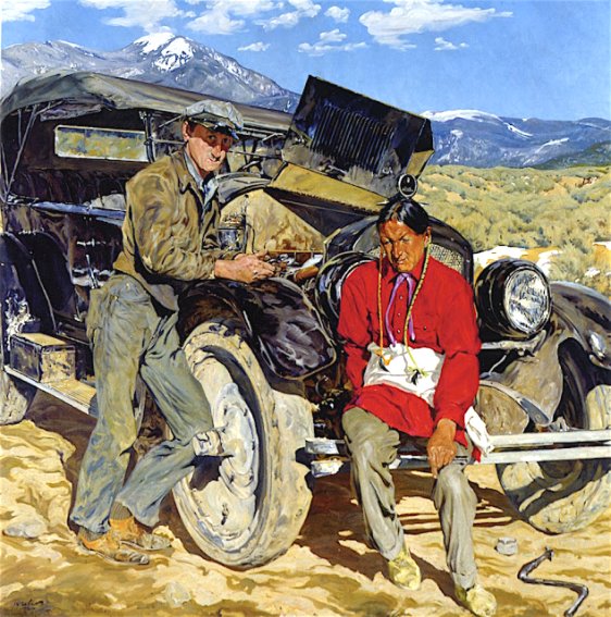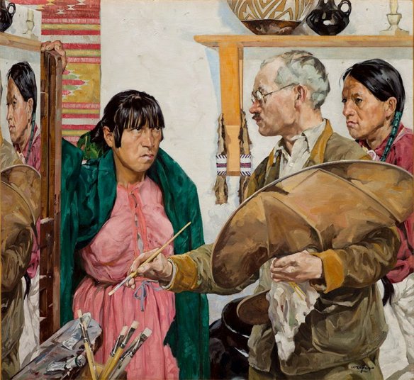 Self portrait, Paint and the Indians by Walter Ufer (1923)