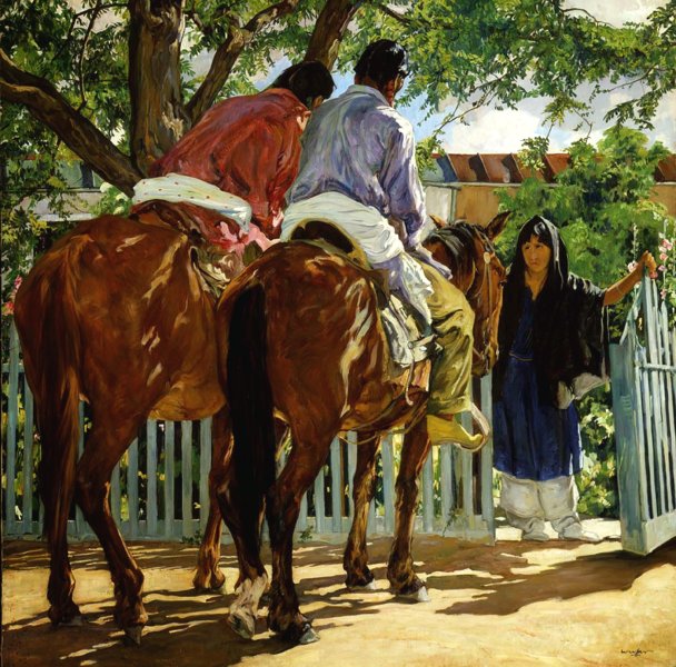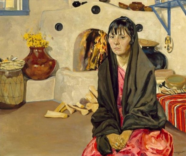 The TSA artists, with additional members, also became known as the “Taos Ten” were all captivated by the region’s rugged landscape and its native inhabitants. However, each artist had their own unique style and viewpoint. Walter Ufer came to the group bringing with him his European training and modernist propensities, and he was able to add an individual voice. Ufer was known for his strong compositions, the use of a vibrant colour palette, and a more direct, and less romanticized portrayal of his subjects in comparison to some of his fellow members. However, he still collaborated closely with the other members of the TSA all the time sharing ideas and participating in the Society’s collective efforts to gain national recognition for Southwestern art. The TSA played a very important role in popularizing images of the American West and its indigenous peoples and enhanced the nation’s perception of this unique region.