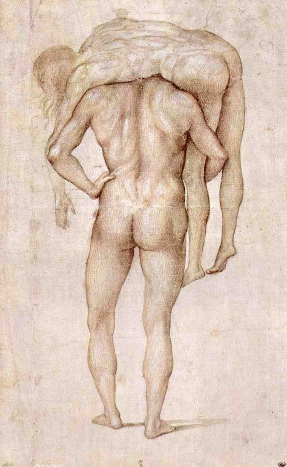 A Corpse-carrying Nude man by Luca Signorelli (1496). Musée du Louvre