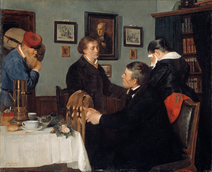 Remedios Varo’s religious upbringing was a tale of two parental beliefs. Her mother, Ignasia, was a devout Catholic whereas her father, Rodrigo, was more receptive to religious beliefs of different faiths. Remedios was very close to her mother but did not believe in her narrow Catholic beliefs favouring her father’s more varied and less dogmatic religious viewpoint. Varo’s father wanted his daughter to attend a “free” school which was independent from both the State and the Church and which many believed gave a more rounded education and were educationally superior to Catholic schools, but her mother demanded Remedios attended a Catholic school. Her mother’s will must have been acceded to as Remedios attended a Roman Catholic convent school run by nuns. A strict belief in Catholicism was demanded of the pupils and to counter this Remedios would immerse herself in books by authors such as Edgar Allan Poe, Jules Verne and Alexandre Dumas, which spun stories of fantasy worlds. She also liked to read about mysticism and alchemy. It was the strict regimented existence at the Catholic convent school which led, in 1931, to her painting the triptych in which she ridiculed the restraints of convent schooling.