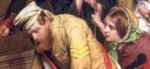 Another of Domenico Induno’s paintings came up at the Christies London auction in June 2006 and realised £60K, well above its £18K-£25K estimate. The painting is entitled The Post Boy and we see the main character sitting and relaxing at a table outside a house or inn. In his left hand he holds his whip with which he controls his horse and carriage and tucked under his left arm is his bugle sounded when he and the post has arrived in town. In front of him are two young children, the elder of whom , a girl, is listening to his stories, whilst the younger hangs on to her apron. On the floor we see some small fowl pecking away at some food.