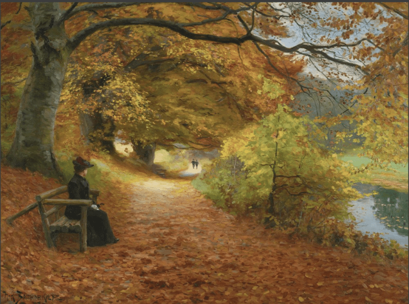 Hedley completed an interesting work in 1900 entitled Ars Longa, Vita Brevis which was exhibited at that year’s Royal Academy Exhibition. It would almost be classed as a Vanitas painting focusing on the unstoppable transience of life but it does not have the usual Vanitas symbols such as burnt out candles and skulls. And yet the title of the painting, Ars longa, Vita Brevis meaning Art is long, life is short is the perfect title for a Vanitas work. The painting is one that elicits our sympathy for the aging artist we see before us. Look how the depiction evokes this feeling. The setting is a small drably-coloured attic space in which we see the artist sitting on his bed in front of an easel. He loosely holds his palette and brushes and yet he has to rest them on his knees. He has nodded off to sleep in the middle of his work. Is it that he is tired or is it a sign that he has almost given up on life? What are his circumstances and what are his thoughts? Is he lonely and without friends? Does he mull over his past life and consider past decisions that he has made and which have brought him to this point in his life? I will leave you to decide.