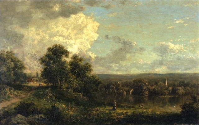 Robinson went on to exhibit his works at five more Salons during the 1880’s. Following the time spent on his Salon entry and its inclusion at the 1877 Salon, Robinson decided to take a break from his studies and head out of the city and delve into the nearby countryside around Fontainebleau. He and some of his fellow artists, Will Low, Birge Harrison and Walter Launt Palmer travelled to the village of Grèz which was on the banks of the River Loing on the southern edge of the Forest of Fontainebleau, some fifteen kilometres south of Barbizon. At the time, this was an area that was awash with artist colonies such as those at Barbizon, Grèz-sur-Loing, Montigny-sur-Loing and Thomery but at this time, Grèz was the most popular with artists who wanted to spend the day painting en plein air and the evening spent talking about art. This popular idyll was described in the book Theodore Robinson’s La Debacle, 1892: an American Artist in France by Betsy Kathryn Koeninger, in which she quotes the words of the Scottish painter John Lavery, a student at the Académie Julien who stayed in the village in the early 1880’s. He described the ambience of the village and its surroundings: